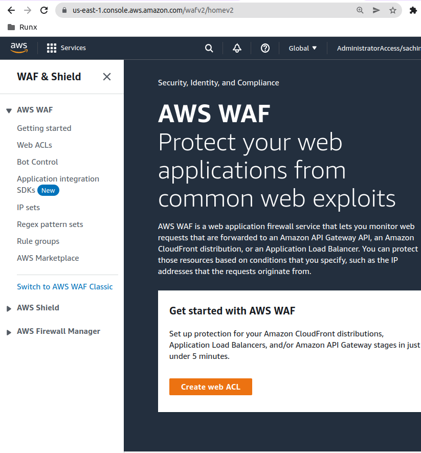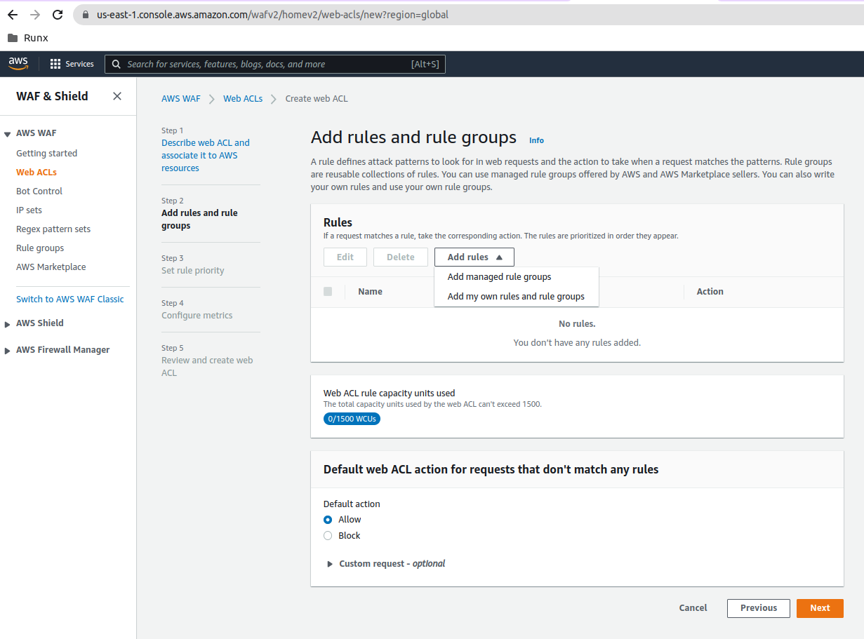 Next, we need to create an AWS WAF to protect our service and cloudfront CDN cache. We do this via the AWS WAF GUI.